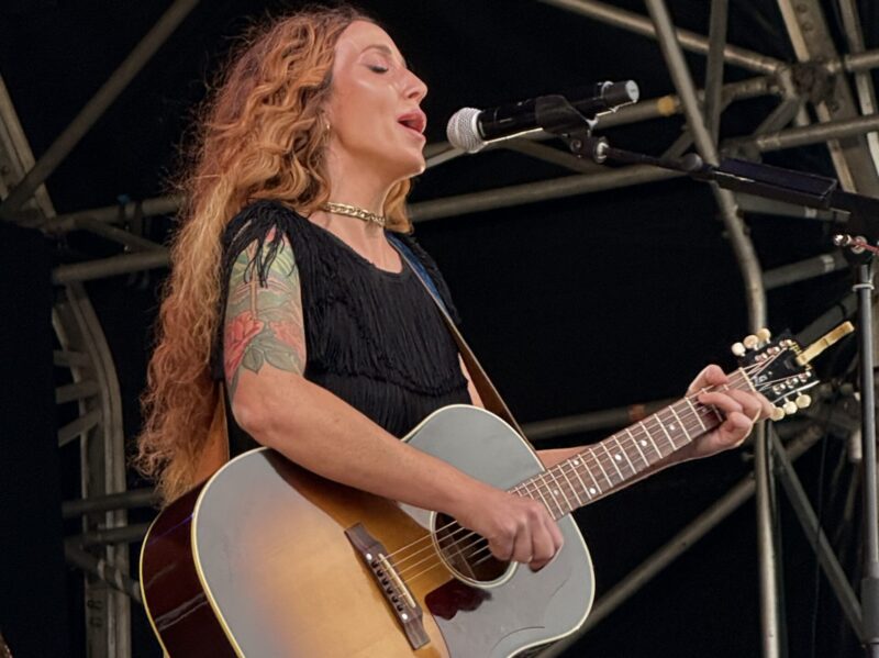 Ashley Monroe is a long-standing favourite, and she didn’t disappoint with her early evening Friday set on the main Rhinestone stage. starting her set with a solo number on piano, she then moved to acoustic guitar, backed with her band. Highlights of her set included her co-write with Chris Stapleton ‘If the Devil Don’t Want Me’, a full-on rocker ‘Hot Rod Pipe Dream’, and ‘Heart Like Mine’ co-written with Miranda Lambert on a Dollywood porch with a bottle of wine, worrying they heard a bear rustling in the undergrowth. This song, written when she was 19, was one of her two hits, although not for herself, along with ‘Like a Rose’ co-written with Guy Clark. Monroe told us that she had come to the writing session with Clark, one of her songwriting heroes, with a number of ideas, none of which he liked; he told her “tell me your story“. Monroe told him that her dad died when she was 13, her mum left for a while and came back, and despite everything she “came out like a rose“ – and so the song was born. A personal favourite of mine is ‘Weed Instead of Roses’, a heartfelt and humorous plea to restore the passion in a relationship, and she invited Fancy Hagood on as a guest, to duet with her on their cover of ‘Islands in the Stream’, a big hit for Kenny Rogers and Dolly Parton, having been on tour with him.