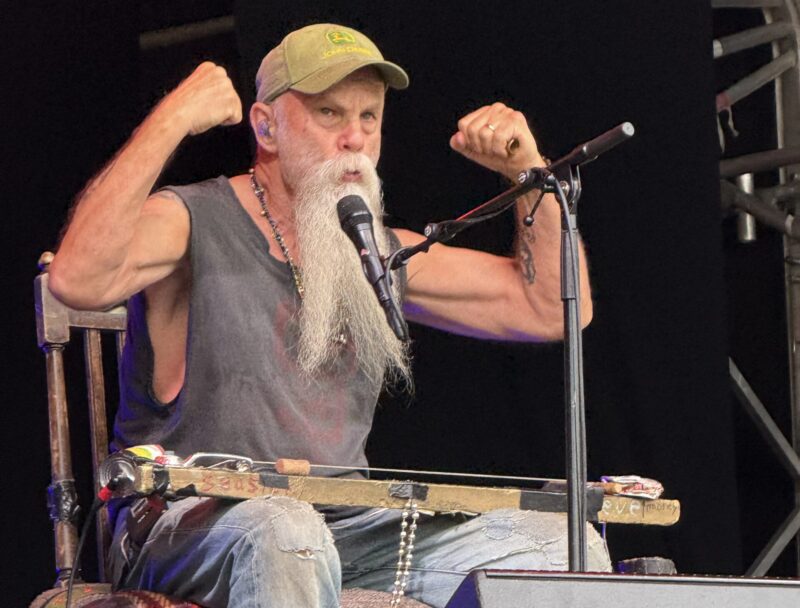 Back to the Rhinestone stage for the final two closing acts – Seasick Steve was speaking the blindingly obvious when he said at the start of his set – “I’m not country – but I am loud” – and proceeded to demonstrate the truth of both statements. A true one off, his energy and drive were evident throughout his set, switching between guitars and his one string diddly bow, his music powerful and primeval. He even found the energy to intervene briefly in a domestic dispute which spilt over at stage front – before returning to the stage. An irrepressible showman, he kept the closing night crowd engaged and entertained, before the final act, James Bay.