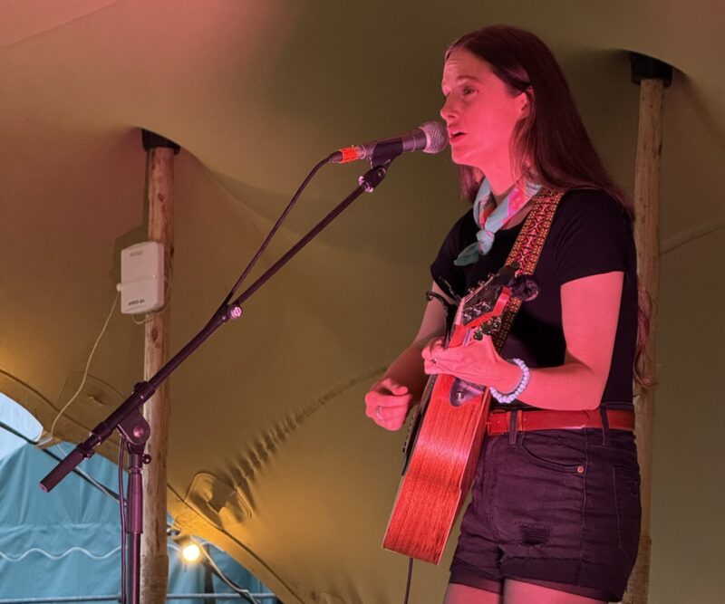 The highfalootin VIP stage, an intimate stage close to Stanford Hall itself, was an opportunity to hear the fine original music of Irish artist Maria Byrne, performing on guitar with her band (pedal steel, bass and percussion). Arriving back only that morning from Rodney Crowell’s well regarded songwriting camp in Nashville, Byrne performed a short set of self-penned songs, including ‘All You Need’, ‘One More Day’, and ‘Keep On’, showcasing her sweet vocals.